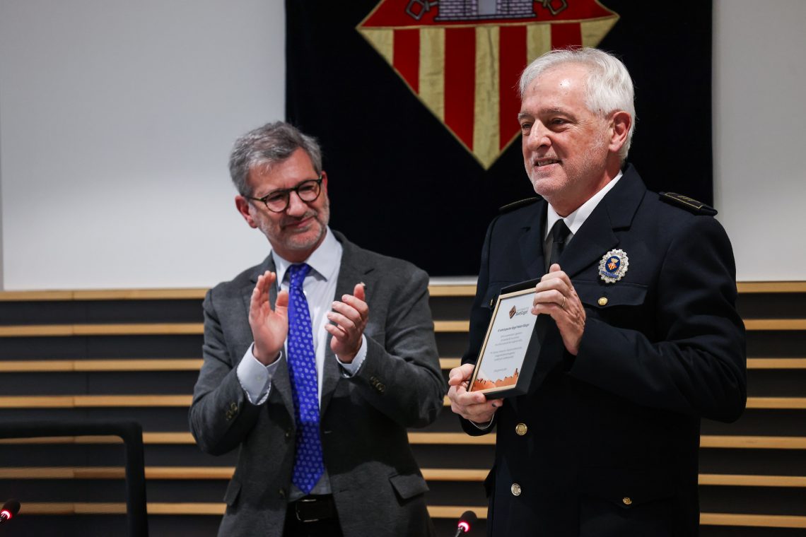 Avui, Àngel, la Policia Local de Sant Cugat, els teus companys, també els Mossos, Protecció Civil, ADF… així com el mateix Ajuntament volem reconèixer públicament el teu compromís i la teva dedicació a Sant Cugat. Volem reconèixer la teva trajectòria exemplar.